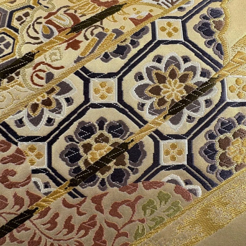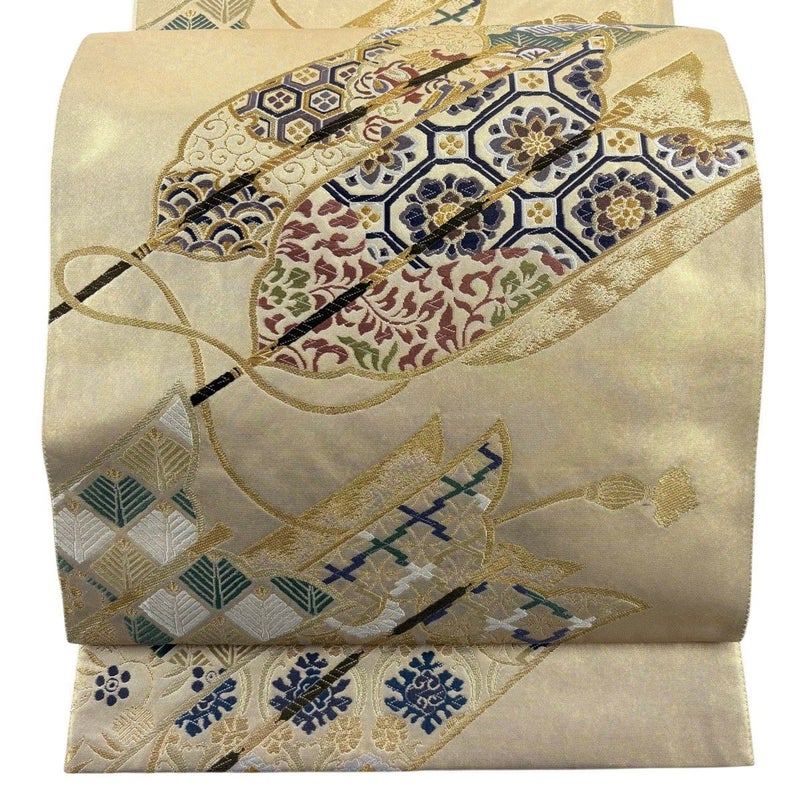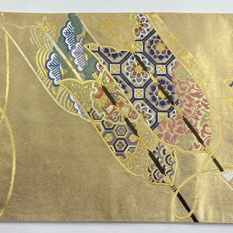 【美品】 袋帯 秀品 古都の絲季 矢羽根 蜀江華文 金糸 箔 金色 六通 正絹