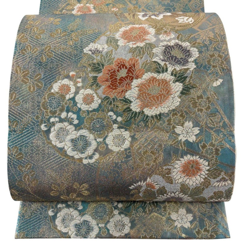 【袋帯】 青系 青緑 秀品 A 帯丈426cm~435cm 7990-9980 美品 二万以下