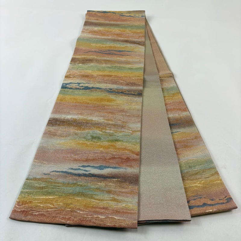 【着物ランク】秀品 【素材】正絹 【帯丈】約446cm 【帯幅】約31.5cm 【帯仕立て】仕立て上がり 【状態ランク】ランクA 【帯着用シーン】セミフォーマル(色無地・付下げ)