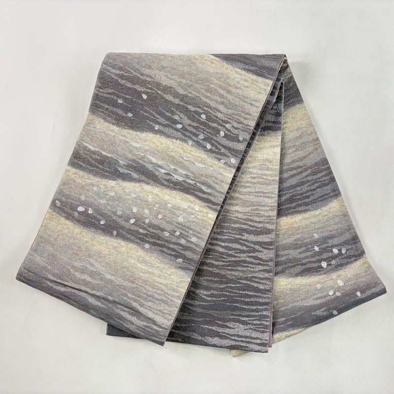 【袋帯】 灰色系 灰紫 名品 A 帯丈436cm以上 9990-29990 美品 二万以下