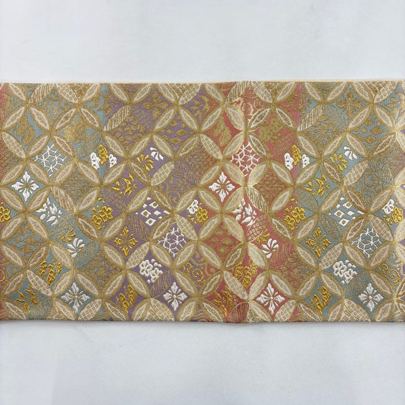 セミフォーマルでお使いいただける袋帯でございます。 見る人に重たい印象を感じさせない女性ならではの、気品豊かな一品です。 手先に糸ゆるみがございます。 リユース品としては目立った染み傷なく、状態の良いお品でございます。 ※なお、厳しく商品の状態確認を行っておりますが、記載の汚れ以外にも見落とし箇所がある可能性がある旨ご了承いただけますと幸いです。 沢山の商品の中からご覧いただき誠にありがとうございます。 【PR2】