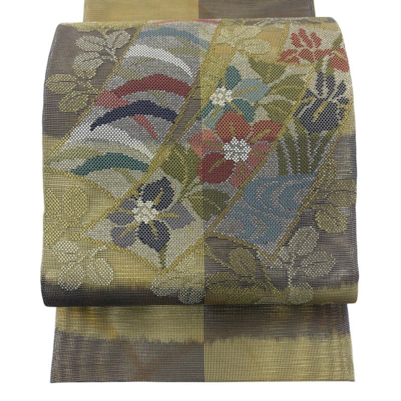 セミフォーマルでお使いいただける夏物の袋帯でございます。 見る人に重たい印象を感じさせない女性ならではの、気品豊かな一品です。 リユース品としては目立った染み傷なく、状態の良いお品でございます。 ※なお、厳しく商品の状態確認を行っておりますが、記載の汚れ以外にも見落とし箇所がある可能性がある旨ご了承いただけますと幸いです。 沢山の商品の中からご覧いただき誠にありがとうございます。