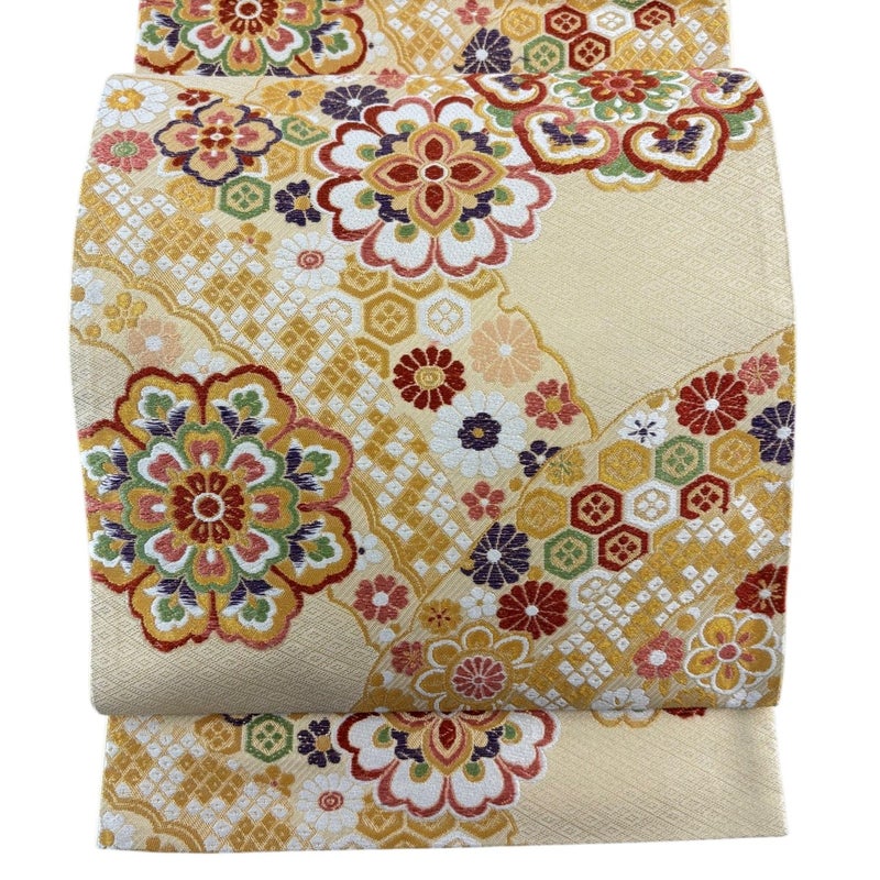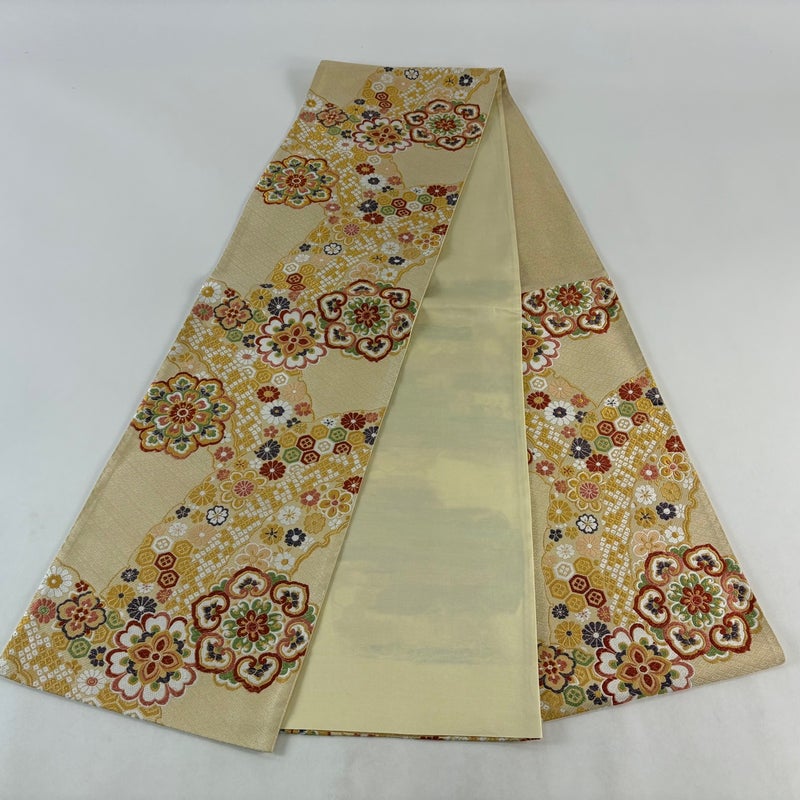 【着物ランク】秀品 【素材】正絹 【帯丈】約452cm 【帯幅】約31.5cm 【帯仕立て】仕立て上がり 【状態ランク】ランクB 【帯着用シーン】セミフォーマル(色無地・付下げ)