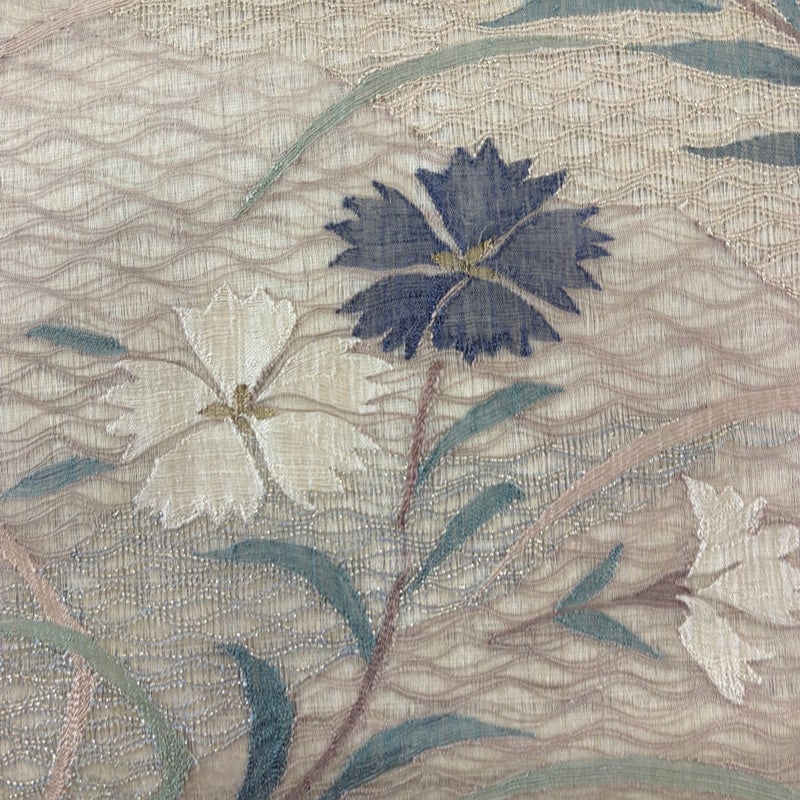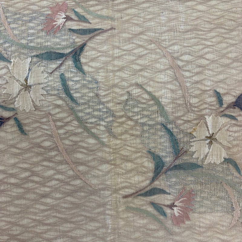 セミフォーマルでお使いいただける夏物の袋帯でございます。 見る人に重たい印象を感じさせない女性ならではの、気品豊かな一品です。 締め跡がございます。 前柄にシミがございます。 リユース品としては良い状態で、まだまだご活用頂けると思われます。 ※なお、厳しく商品の状態確認を行っておりますが、記載の汚れ以外にも見落とし箇所がある可能性がある旨ご了承いただけますと幸いです。 沢山の商品の中からご覧いただき誠にありがとうございます。