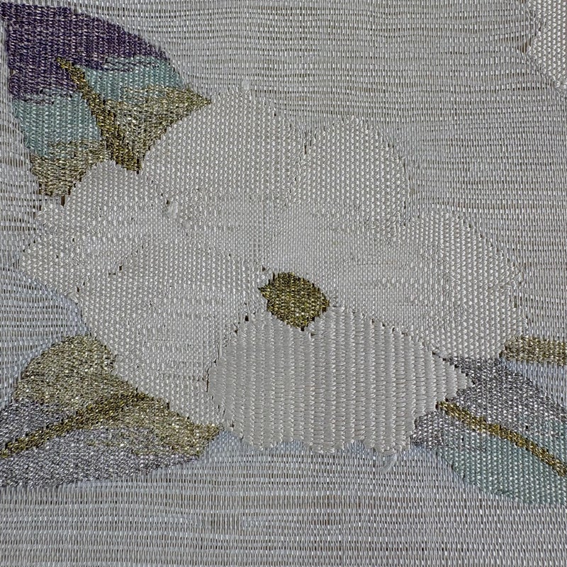 夏帯でございます。 セミフォーマルでお使いいただける袋帯でございます。 見る人に重たい印象を感じさせない女性ならではの、気品豊かな一品です。 締め跡がございます。 表地、裏地所々にヤケ、お太鼓と前柄に若干の金銀糸の変色がございます。 リユース品としては良い状態で、まだまだご活用頂けると思われます。 ※なお、厳しく商品の状態確認を行っておりますが、記載の汚れ以外にも見落とし箇所がある可能性がある旨ご了承いただけますと幸いです。 沢山の商品の中からご覧いただき誠にありがとうございます。