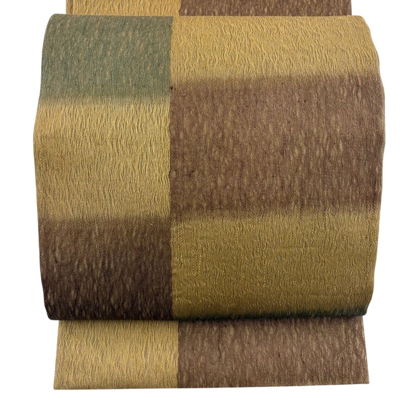 普段使いでお使いいただける袋帯でございます。 カジュアルな装いに合わせてお使いください。 締め跡がございます。 お太鼓付近と前柄付近にシワがございます。 リユース品としては目立った染み傷なく、状態の良いお品でございます。 ※なお、厳しく商品の状態確認を行っておりますが、記載の汚れ以外にも見落とし箇所がある可能性がある旨ご了承いただけますと幸いです。 沢山の商品の中からご覧いただき誠にありがとうございます。