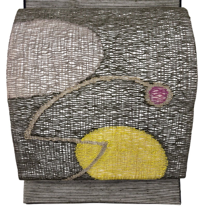 普段使いでお使いいただける夏物の袋帯でございます。 カジュアルな装いに合わせてお使いください。 締め跡がございます。 中無地所々にシワ、手先付近と前柄お太鼓間に生地の継ぎ足しがございます。 ご購入の際はその点ご留意ください。 ※なお、厳しく商品の状態確認を行っておりますが、記載の汚れ以外にも見落とし箇所がある可能性がある旨ご了承いただけますと幸いです。 沢山の商品の中からご覧いただき誠にありがとうございます。