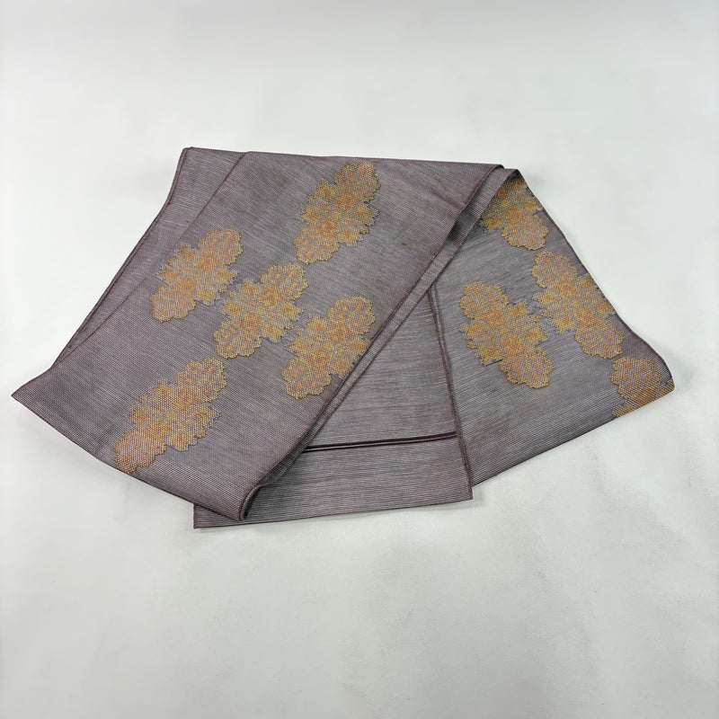 夏帯でございます。 セミフォーマルでお使いいただける袋帯でございます。 見る人に重たい印象を感じさせない女性ならではの、気品豊かな一品です。 締め跡がございます。 表地や裏地の所々に小さいほつれがございます。 リユース品としては目立った染み傷なく、状態の良いお品でございます。 ※なお、厳しく商品の状態確認を行っておりますが、記載の汚れ以外にも見落とし箇所がある可能性がある旨ご了承いただけますと幸いです。 沢山の商品の中からご覧いただき誠にありがとうございます。