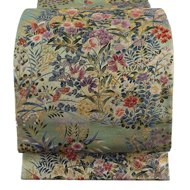 【袋帯】 緑系 薄緑 名品 A 帯丈436cm以上 9990-29990 美品 二万以下