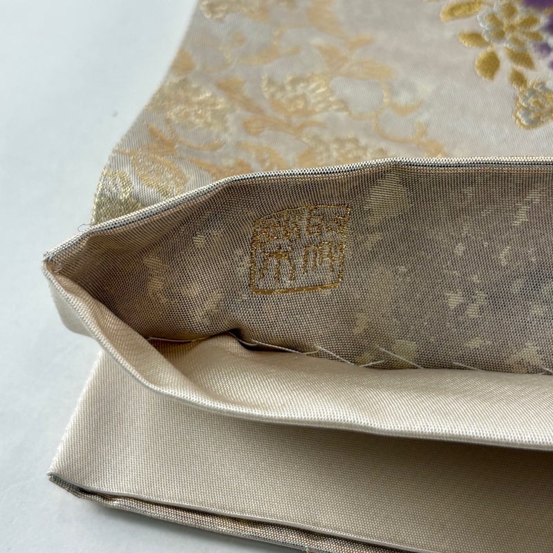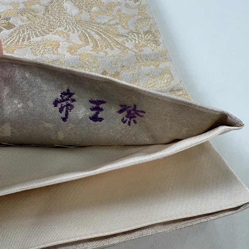 京都西陣、染と織の名門「じゅらく」謹製による作品でございます。 おめでたい席に相応しい意匠の袋帯でございます。 格式高いお席にもお使いいただけますので、お見逃しのないようお願いいたします。 帯芯が入っておりません。 締め跡がございます。 表地所々に生地のヨレ、締め跡沿いに汚れとシワがございます。 リユース品としては良い状態で、まだまだご活用頂けると思われます。 ※なお、厳しく商品の状態確認を行っておりますが、記載の汚れ以外にも見落とし箇所がある可能性がある旨ご了承いただけますと幸いです。 沢山の商品の中からご覧いただき誠にありがとうございます。
