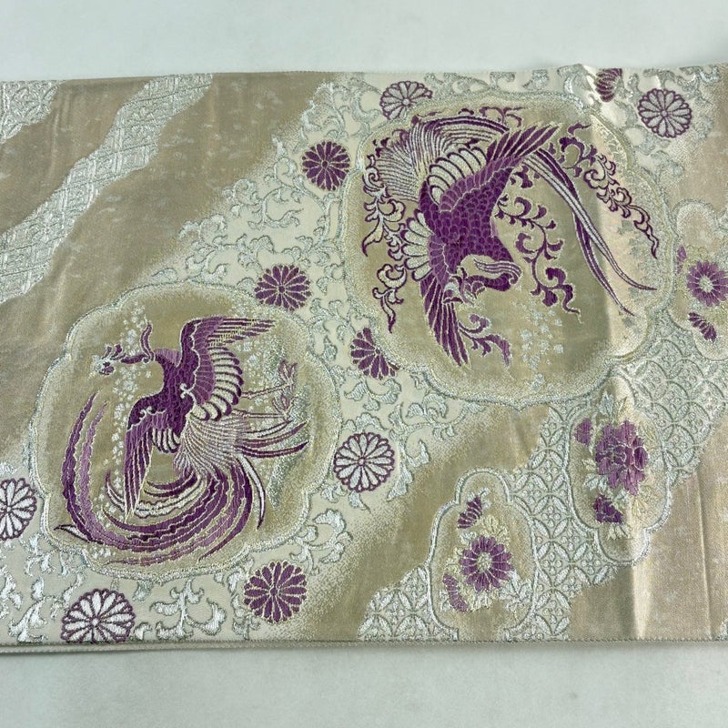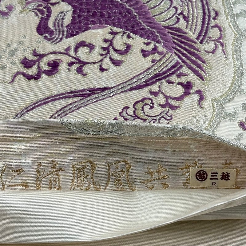 京都西陣、染と織の名門「じゅらく」謹製による作品でございます。 おめでたい席に相応しい意匠の袋帯でございます。 格式高いお席にもお使いいただけますので、お見逃しのないようお願いいたします。 締め跡がございます。 前柄に柄のほつれがございます。 リユース品としては良い状態で、まだまだご活用頂けると思われます。 ※なお、厳しく商品の状態確認を行っておりますが、記載の汚れ以外にも見落とし箇所がある可能性がある旨ご了承いただけますと幸いです。 沢山の商品の中からご覧いただき誠にありがとうございます。 ※保管によるにおい移りがございます。
