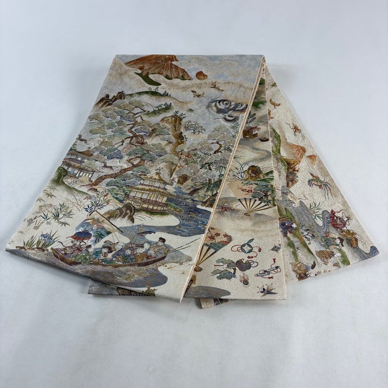 【袋帯】 白系 ベージュ 名品 A 帯丈436cm以上 9990-29990 美品 二万以下