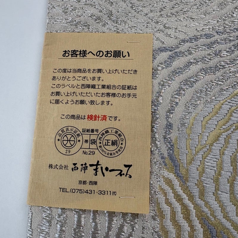 【袋帯】 灰色系 灰白 名品 A 帯丈436cm以上 9990-29990 美品 二万以下