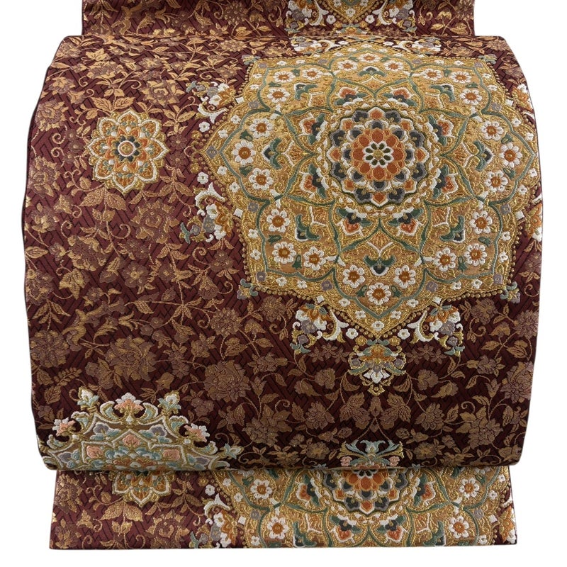 【袋帯】 赤系 えんじ色 秀品 A 帯丈426cm~435cm 7990-9980 美品 二万以下