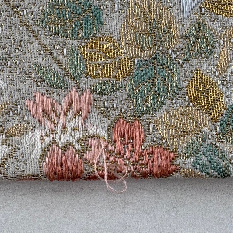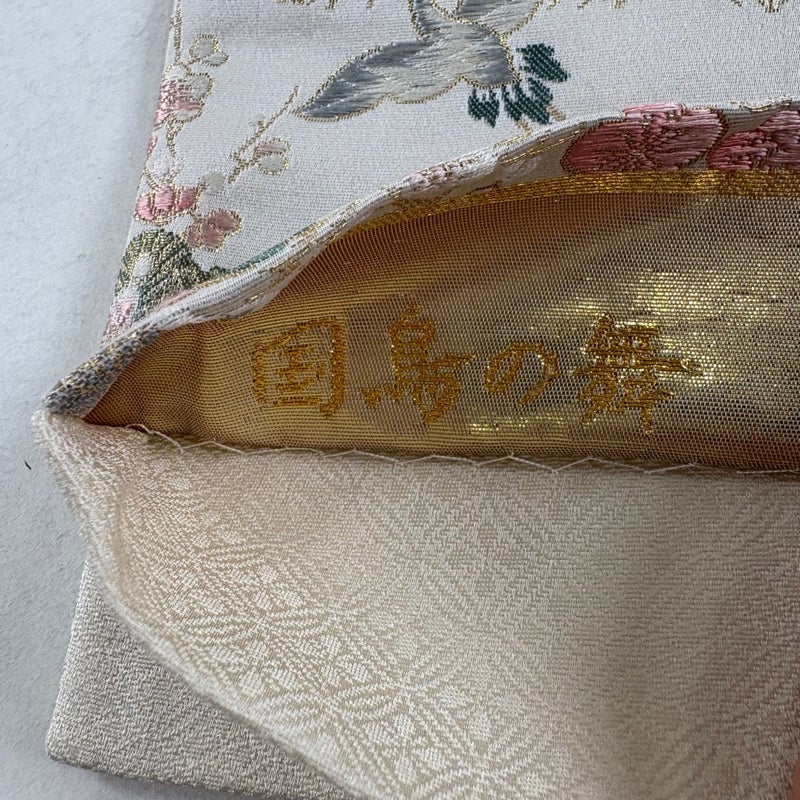 おめでたい席に相応しい意匠の袋帯でございます。 格式高いお席にもお使いいただけますので、お見逃しのないようお願いいたします。 帯芯が入っておりません。 締め跡がございます。 中無地と前柄お太鼓間にシワ、表地所々に刺繍糸のゆるみがございます。 リユース品としては良い状態で、まだまだご活用頂けると思われます。 ※なお、厳しく商品の状態確認を行っておりますが、記載の汚れ以外にも見落とし箇所がある可能性がある旨ご了承いただけますと幸いです。 沢山の商品の中からご覧いただき誠にありがとうございます。
