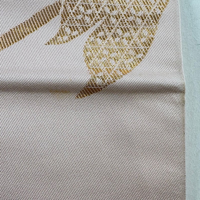 西陣織「桝屋高尾」謹製の作品でございます。 おめでたい席に相応しい意匠の袋帯でございます。 格式高いお席にもお使いいただけますので、お見逃しのないようお願いいたします。 締め跡がございます。 お太鼓付近と前柄付近にヤケ、表地所々にシミ、表地所々に薄汚れ、手先にシワがございます。 リユース品としては良い状態で、まだまだご活用頂けると思われます。 ※なお、厳しく商品の状態確認を行っておりますが、記載の汚れ以外にも見落とし箇所がある可能性がある旨ご了承いただけますと幸いです。 沢山の商品の中からご覧いただき誠にありがとうございます。