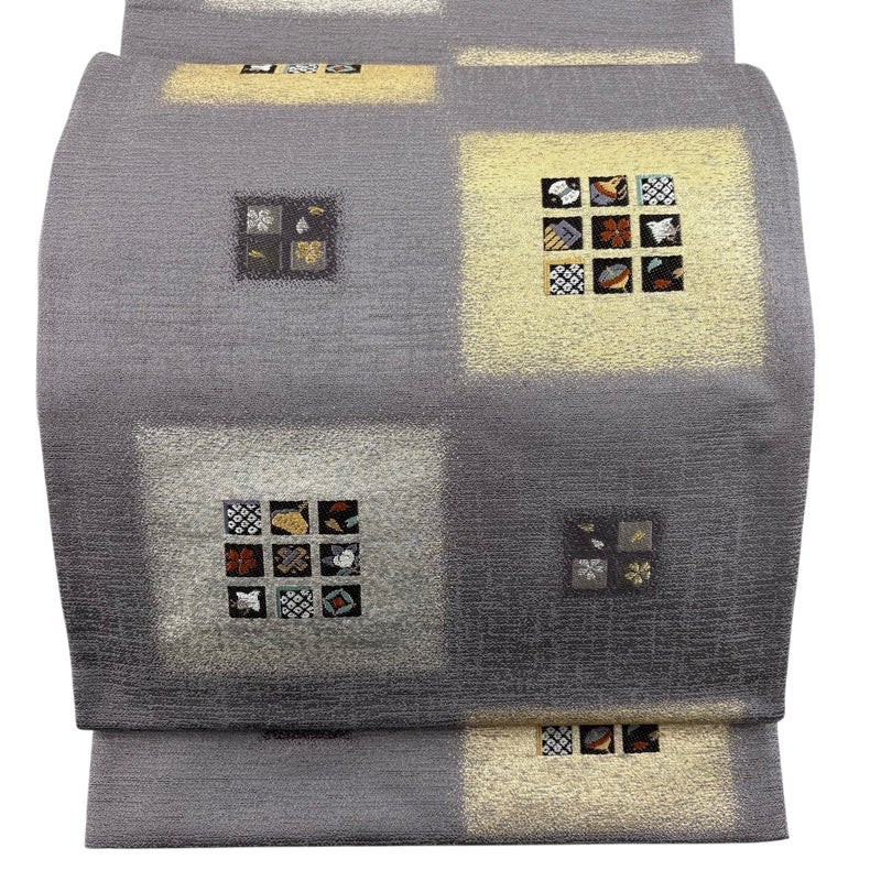 セミフォーマルでお使いいただける袋帯でございます。 見る人に重たい印象を感じさせない女性ならではの、気品豊かな一品です。 リユース品としては目立った染み傷なく、状態の良いお品でございます。 ※なお、厳しく商品の状態確認を行っておりますが、記載の汚れ以外にも見落とし箇所がある可能性がある旨ご了承いただけますと幸いです。 沢山の商品の中からご覧いただき誠にありがとうございます。