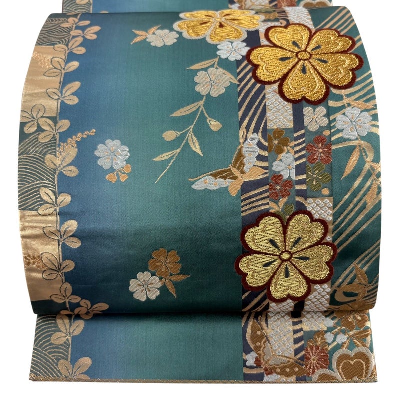 【袋帯】 青系 青緑 秀品 B 帯丈426cm~435cm 4000-7980 二万以下