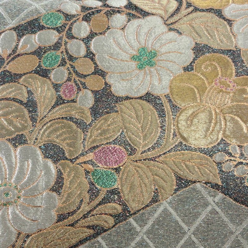 セミフォーマルでお使いいただける袋帯でございます。 見る人に重たい印象を感じさせない女性ならではの、気品豊かな一品です。 締め跡がございます。 リユース品としては目立った染み傷なく、状態の良いお品でございます。 ※なお、厳しく商品の状態確認を行っておりますが、記載の汚れ以外にも見落とし箇所がある可能性がある旨ご了承いただけますと幸いです。 沢山の商品の中からご覧いただき誠にありがとうございます。