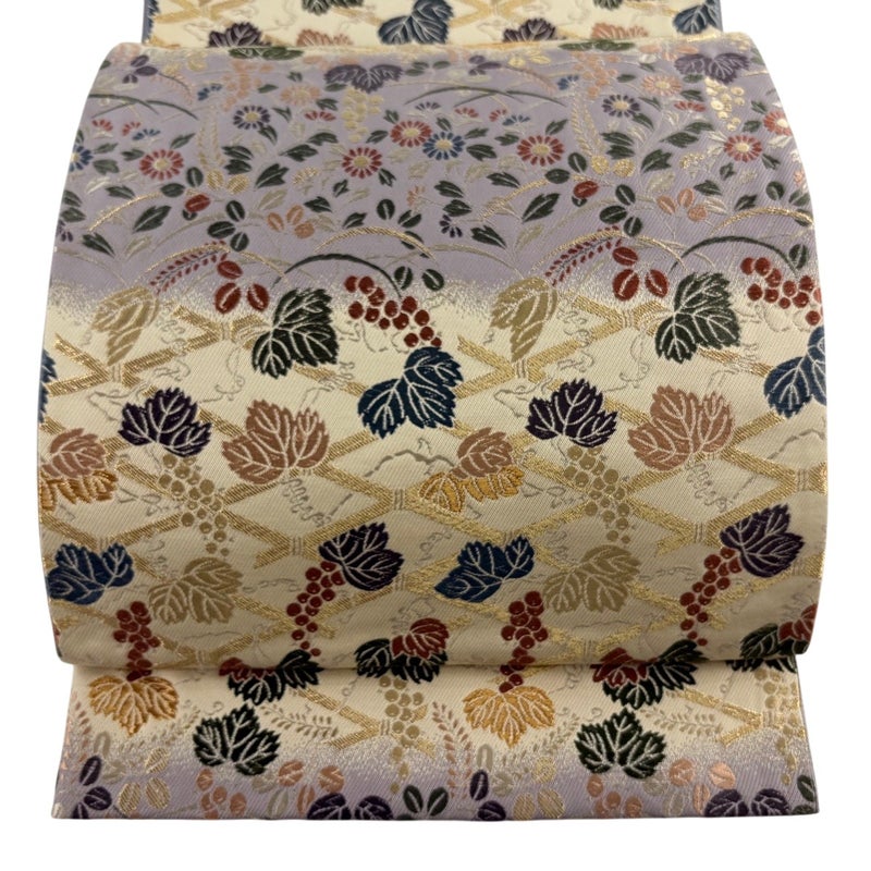 【着物ランク】秀品 【素材】正絹 【帯丈】約428cm 【帯幅】約30.5cm 【帯仕立て】仕立て上がり 【状態ランク】ランクB 【帯着用シーン】セミフォーマル(色無地・付下げ)