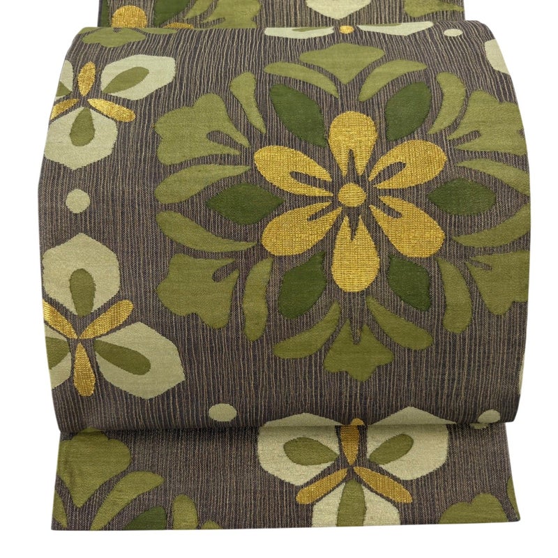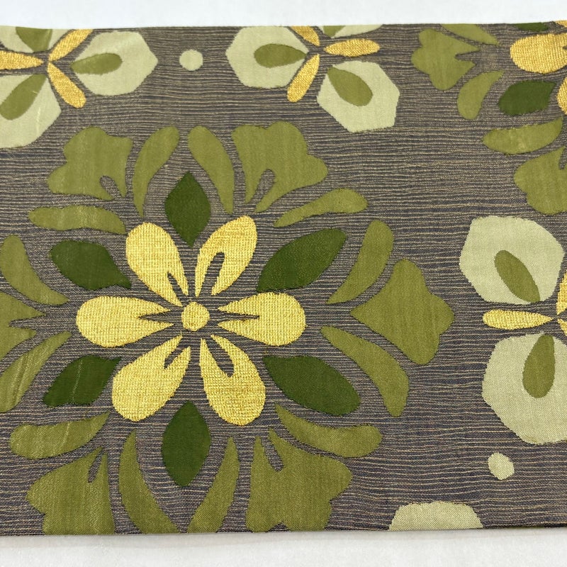 セミフォーマルでお使いいただける袋帯でございます。 見る人に重たい印象を感じさせない女性ならではの、気品豊かな一品です。 締め跡がございます。 リユース品としては目立った染み傷なく、状態の良いお品でございます。 ※なお、厳しく商品の状態確認を行っておりますが、記載の汚れ以外にも見落とし箇所がある可能性がある旨ご了承いただけますと幸いです。 沢山の商品の中からご覧いただき誠にありがとうございます。