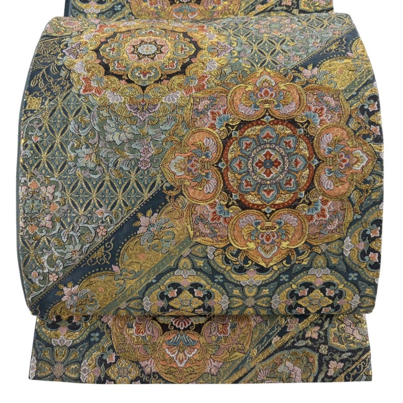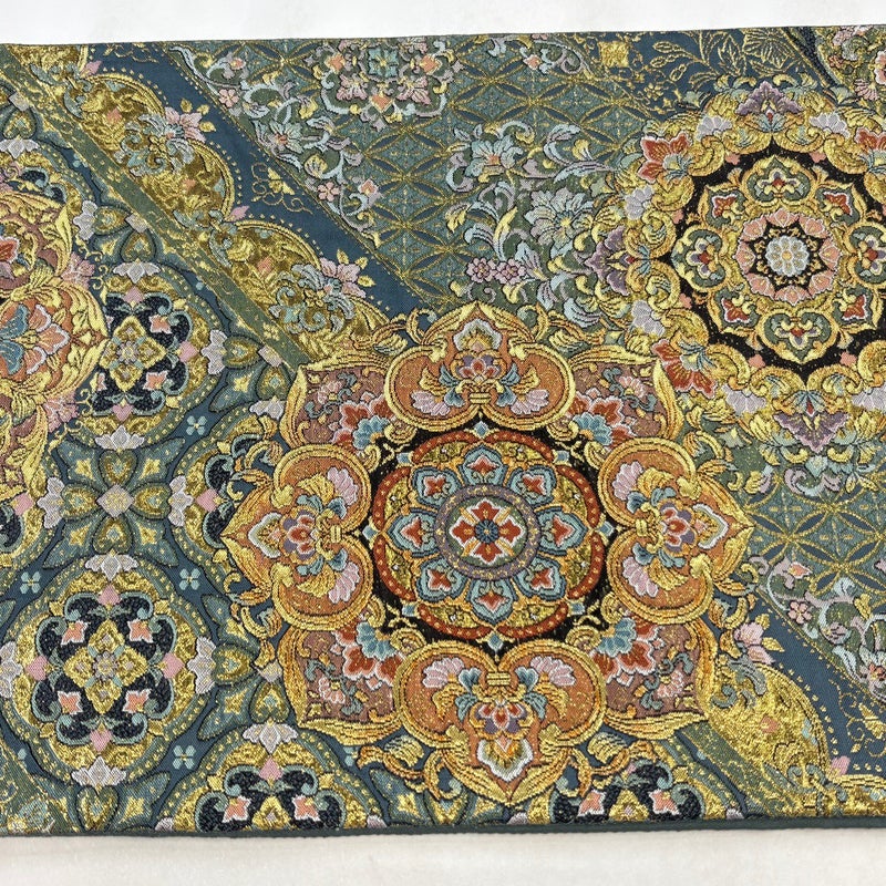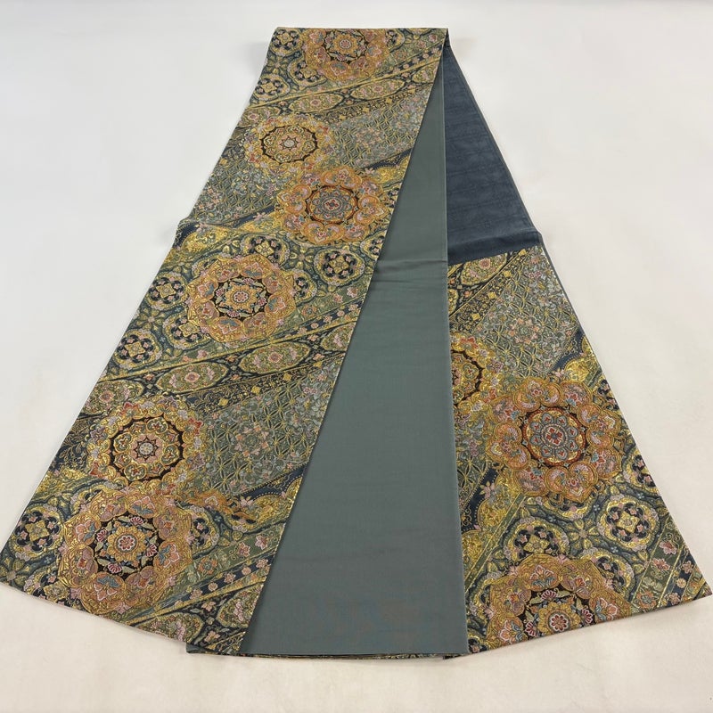 【袋帯】 灰色系 灰緑 秀品 A 帯丈436cm以上 7990-9980 美品 二万以下