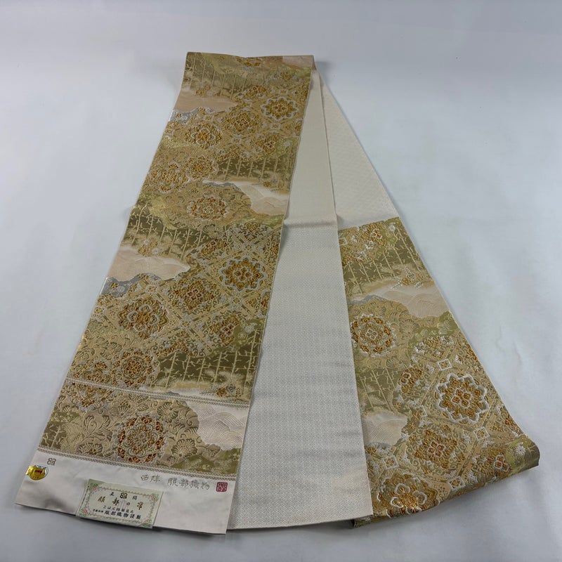 【袋帯】 白系 ベージュ 秀品 A 帯丈436cm以上 7990-9980 美品 二万以下
