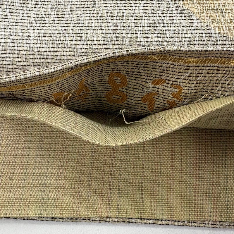セミフォーマルでお使いいただける袋帯でございます。 見る人に重たい印象を感じさせない女性ならではの、気品豊かな一品です。 表地所々に小さなほつれがございます。 リユース品としては良い状態で、まだまだご活用頂けると思われます。 ※なお、厳しく商品の状態確認を行っておりますが、記載の汚れ以外にも見落とし箇所がある可能性がある旨ご了承いただけますと幸いです。 沢山の商品の中からご覧いただき誠にありがとうございます。 ※垂先の一部が開いております。予めご了承くださいませ。