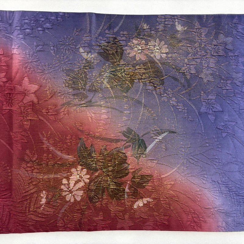 セミフォーマルでお使いいただける袋帯でございます。 見る人に重たい印象を感じさせない女性ならではの、気品豊かな一品です。 締め跡がございます。 前柄所々に金彩の剥がれがございます。 裏地所々に糸つれがございます。 リユース品としては良い状態で、まだまだご活用頂けると思われます。 ※なお、厳しく商品の状態確認を行っておりますが、記載の汚れ以外にも見落とし箇所がある可能性がある旨ご了承いただけますと幸いです。 沢山の商品の中からご覧いただき誠にありがとうございます。