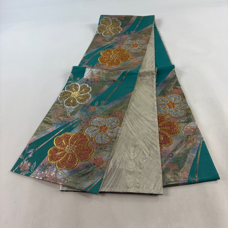 【袋帯】 青系 青緑 秀品 B 帯丈426cm~435cm 4000-7980 二万以下