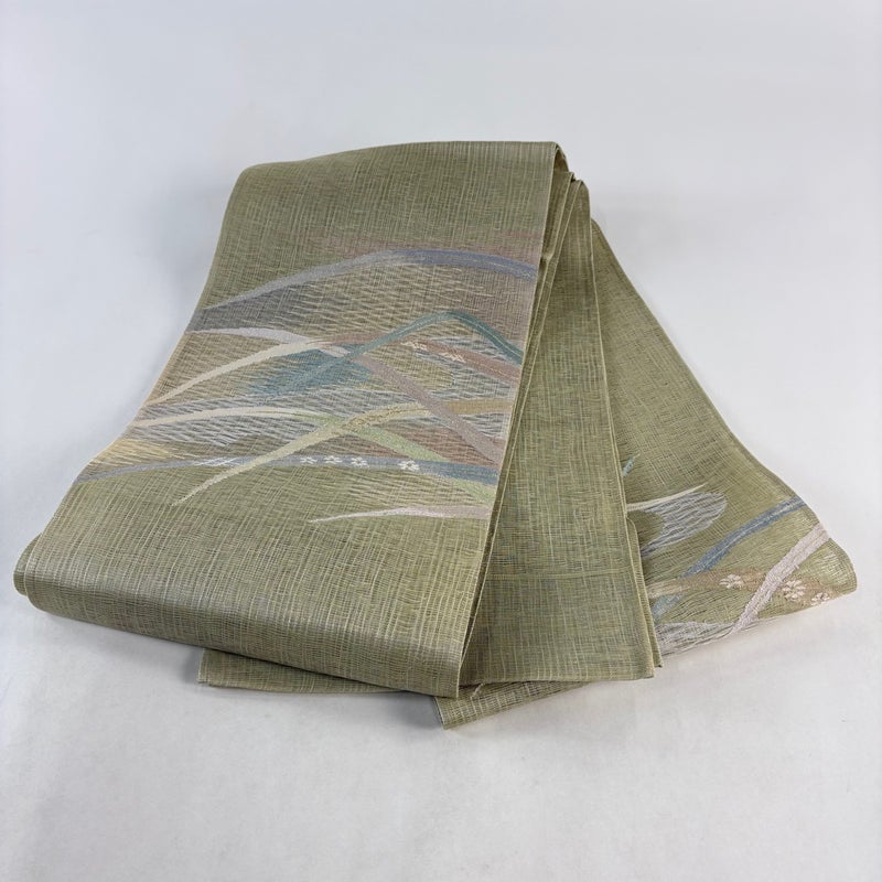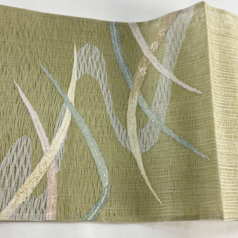 【袋帯】 緑系 抹茶色 秀品 A 帯丈436cm以上 9990-29990 美品 二万以下
