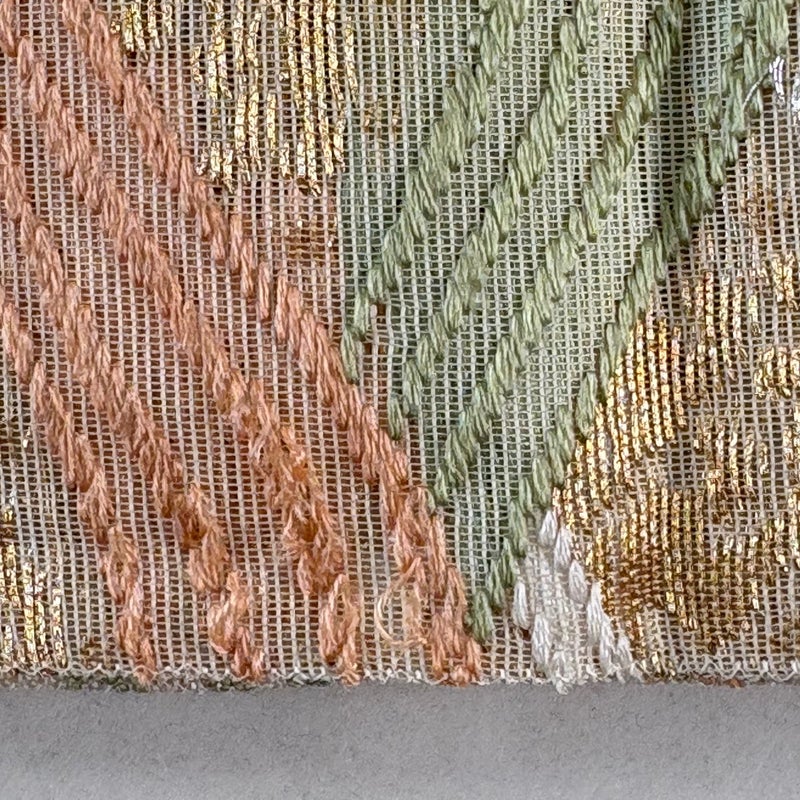夏帯でございます。 セミフォーマルでお使いいただける袋帯でございます。 見る人に重たい印象を感じさせない女性ならではの、気品豊かな一品です。 帯芯が入っておりません。 締め跡がございます。 表地所々に糸ゆるみがございます。 リユース品としては良い状態で、まだまだご活用頂けると思われます。 ※なお、厳しく商品の状態確認を行っておりますが、記載の汚れ以外にも見落とし箇所がある可能性がある旨ご了承いただけますと幸いです。 沢山の商品の中からご覧いただき誠にありがとうございます。
