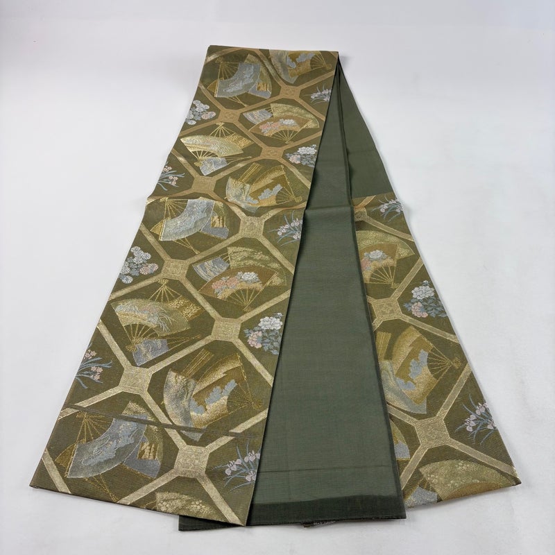 【袋帯】 緑系 鶯色 秀品 A 帯丈436cm以上 9990-29990 美品 二万以下