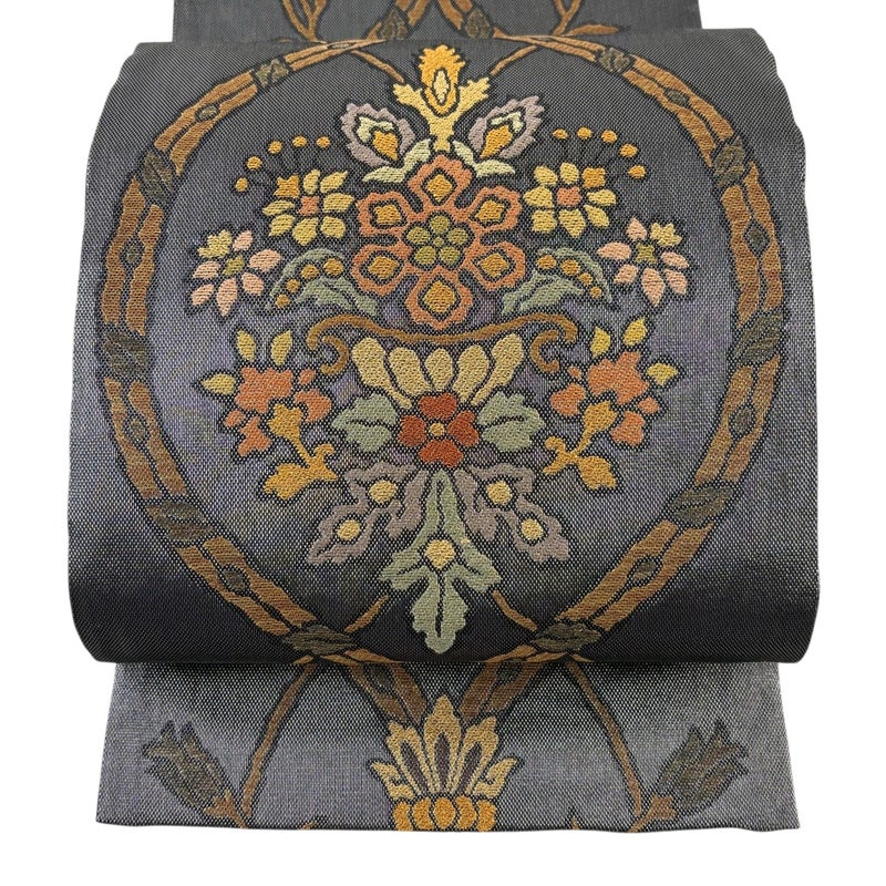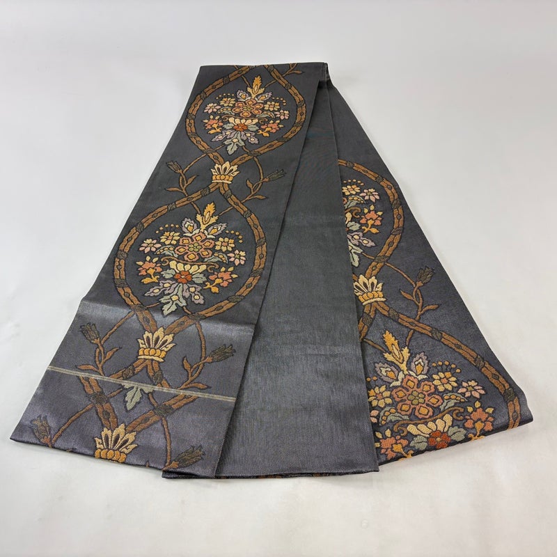 【袋帯】 灰色系 黒灰 秀品 A 帯丈436cm以上 9990-29990 美品 二万以下