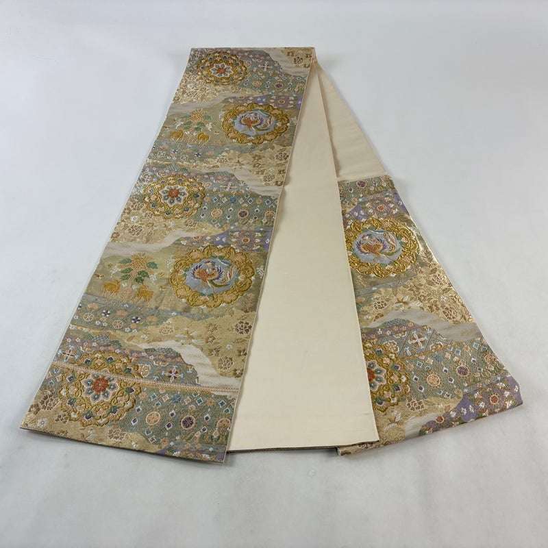 【着物ランク】秀品 【素材】正絹 【帯丈】約422cm 【帯幅】約30.5cm 【帯仕立て】仕立て上がり 【状態ランク】ランクA 【帯着用シーン】フォーマル(留袖・振袖・訪問着)