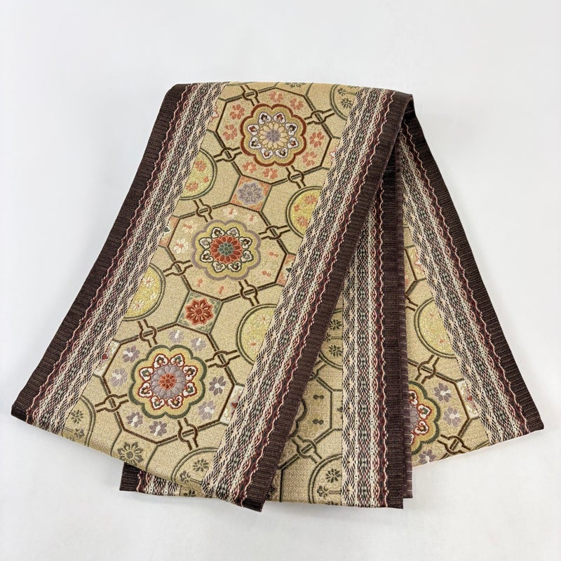 【袋帯】 黄色系 薄黄土色 秀品 A 帯丈426cm~435cm 7990-9980 美品 二万以下