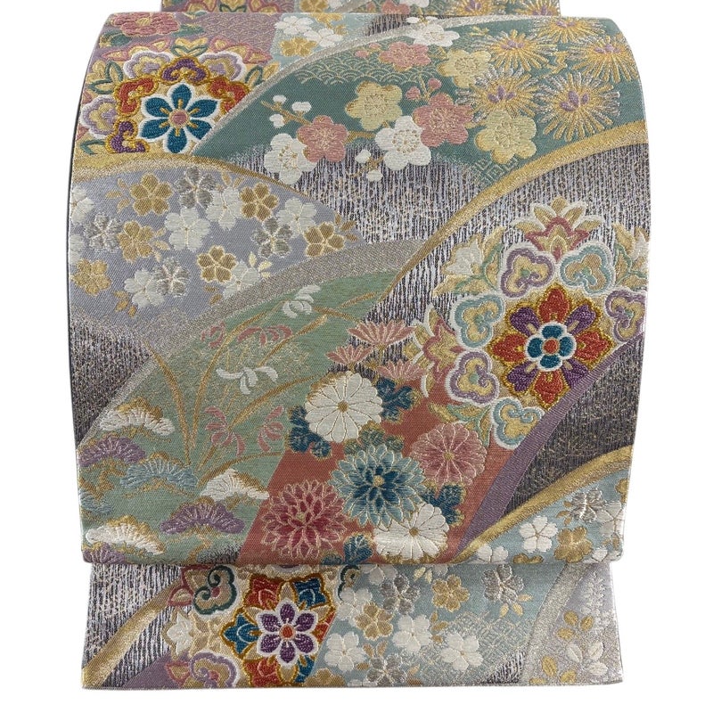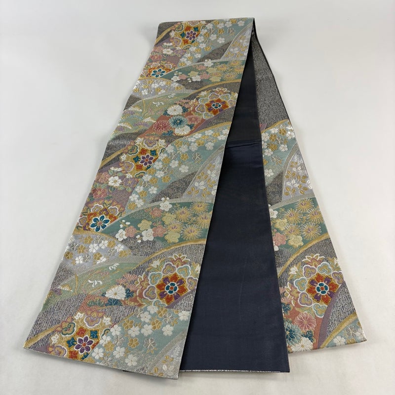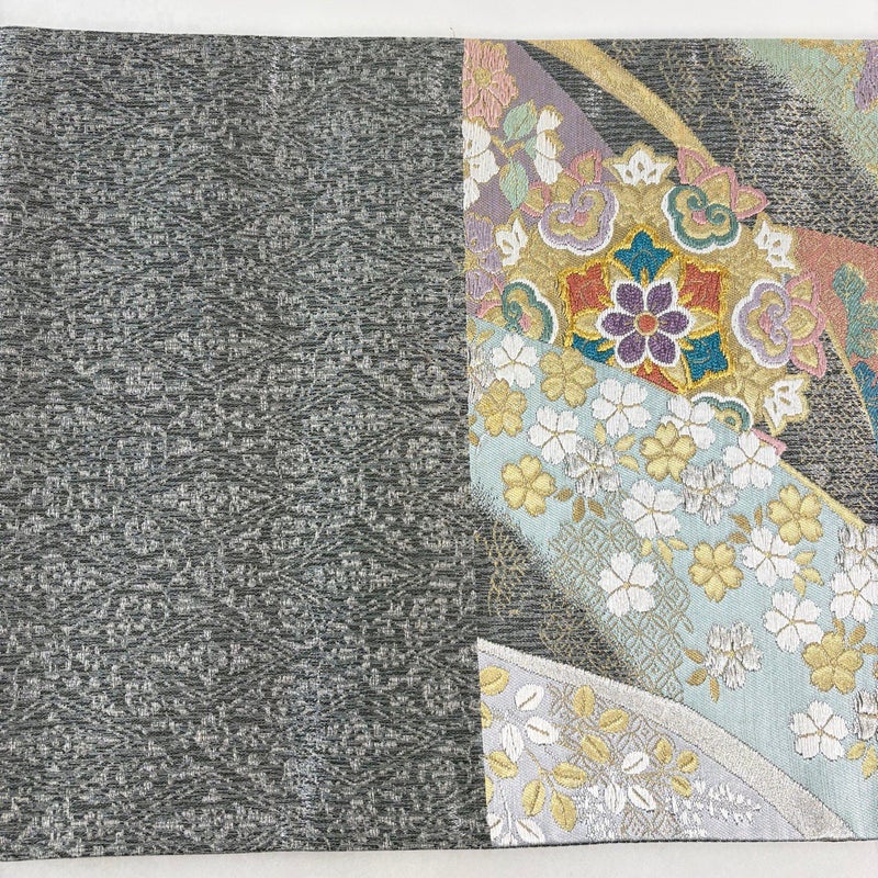 【袋帯】 灰色系 灰緑 秀品 A 帯丈436cm以上 7990-9980 美品 二万以下