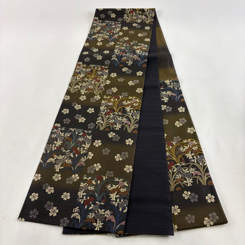 【袋帯】 茶系 茶緑色 秀品 A 帯丈436cm以上 7990-9980 美品 二万以下