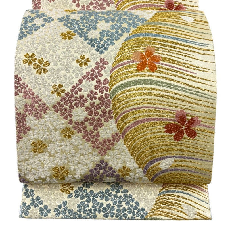 【袋帯】 白系 ベージュ 秀品 A 帯丈436cm以上 7990-9980 美品 二万以下