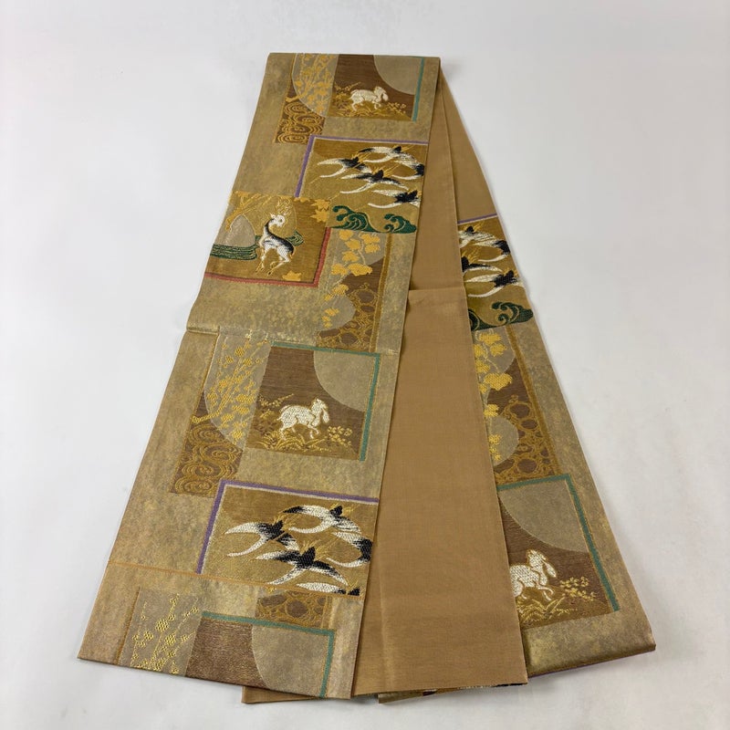 おめでたい席に相応しい意匠の袋帯でございます。 格式高いお席にもお使いいただけますので、お見逃しのないようお願いいたします。 締め跡がございます。 締め跡沿いにシワ、表地所々に金糸の変色がございます。 ご購入の際はその点ご留意ください。 ※なお、厳しく商品の状態確認を行っておりますが、記載の汚れ以外にも見落とし箇所がある可能性がある旨ご了承いただけますと幸いです。 沢山の商品の中からご覧いただき誠にありがとうございます。 【PR2】