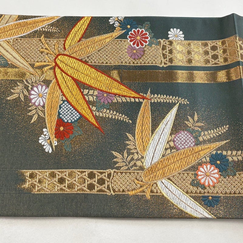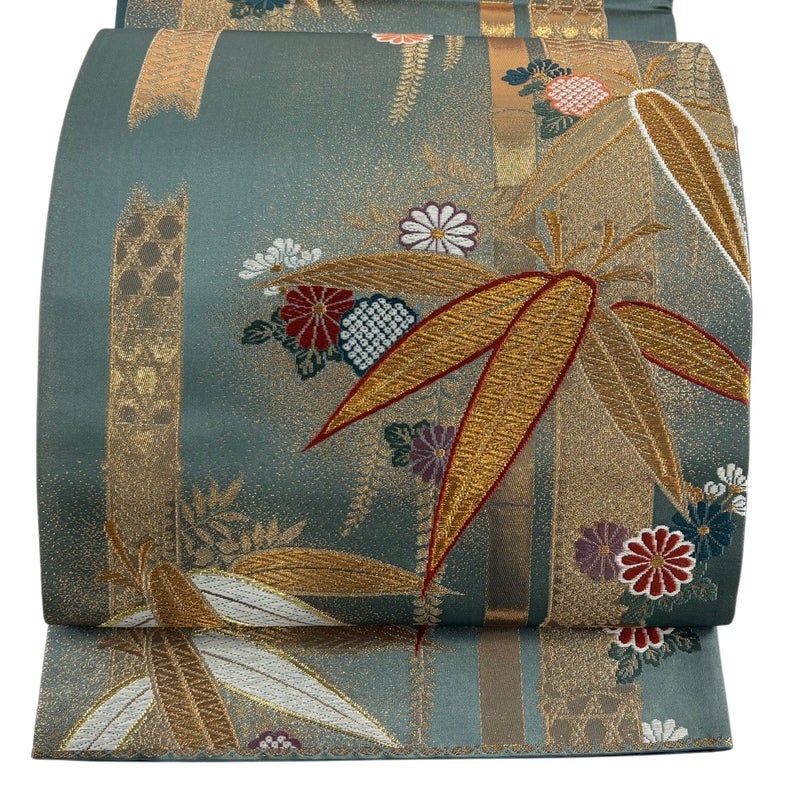 【袋帯】 緑系 緑 秀品 A 帯丈426cm~435cm 7990-9980 美品 二万以下