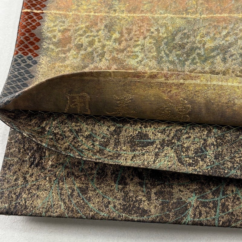 【袋帯】 茶系 茶緑色 秀品 A 帯丈436cm以上 7990-9980 美品 二万以下