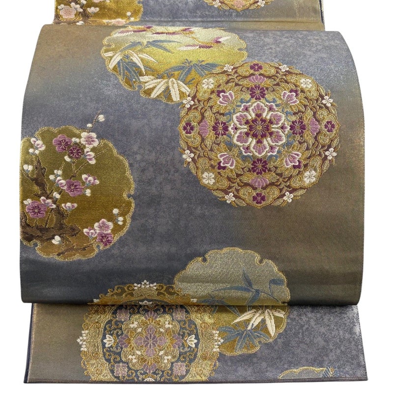 【袋帯】 灰色系 灰色 秀品 A 帯丈436cm以上 7990-9980 美品 二万以下