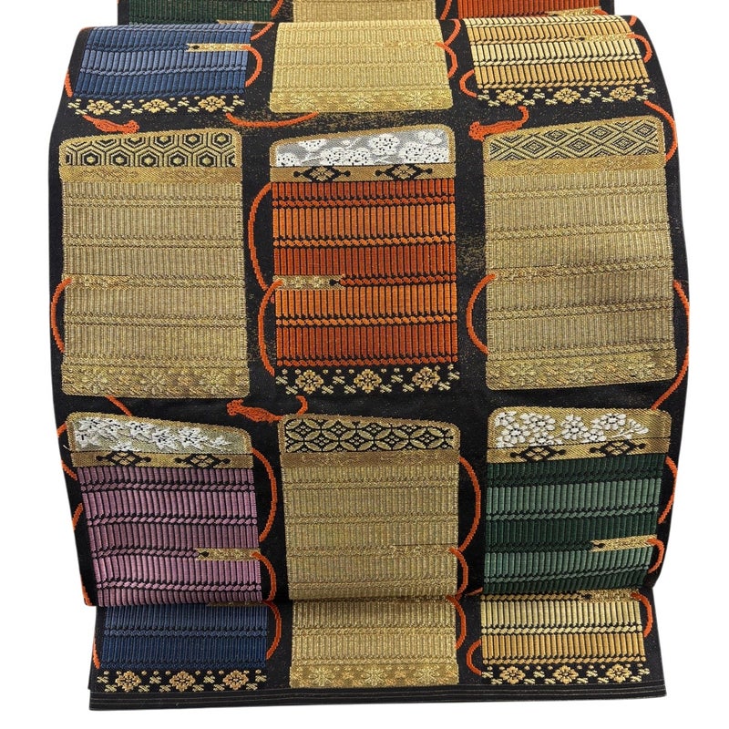 【袋帯】 黒系 黒 秀品 A 帯丈436cm以上 7990-9980 美品 二万以下