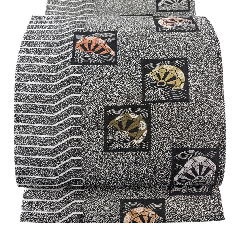 【袋帯】 灰色系 黒灰 秀品 A 帯丈426cm~435cm 7990-9980 美品 二万以下