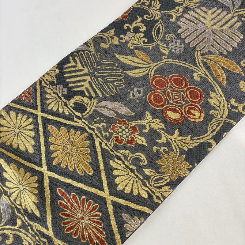 【袋帯】 黒系 墨色 秀品 A 帯丈436cm以上 7990-9980 美品 二万以下