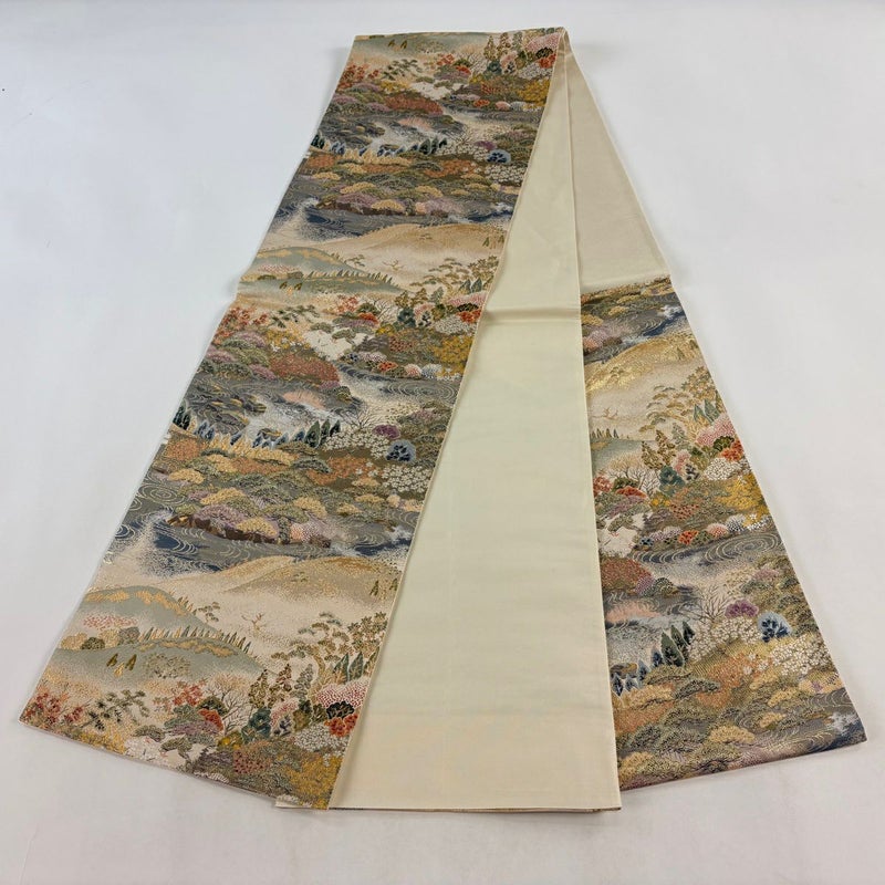 【袋帯】 白系 ベージュ 秀品 A 帯丈436cm以上 7990-9980 美品 二万以下