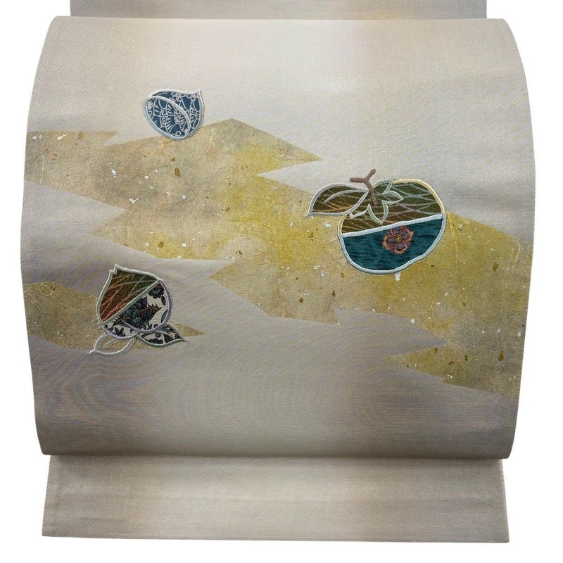 セミフォーマルでお使いいただける袋帯でございます。 見る人に重たい印象を感じさせない女性ならではの、気品豊かな一品です。 締め跡がございます。 手先前柄間にシミ、お太鼓所々に金彩の変色がございます。 リユース品としては目立った染み傷なく、状態の良いお品でございます。 ※なお、厳しく商品の状態確認を行っておりますが、記載の汚れ以外にも見落とし箇所がある可能性がある旨ご了承いただけますと幸いです。 沢山の商品の中からご覧いただき誠にありがとうございます。