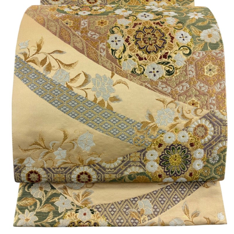 【袋帯】 白系 ベージュ 秀品 A 帯丈436cm以上 7990-9980 美品 二万以下
