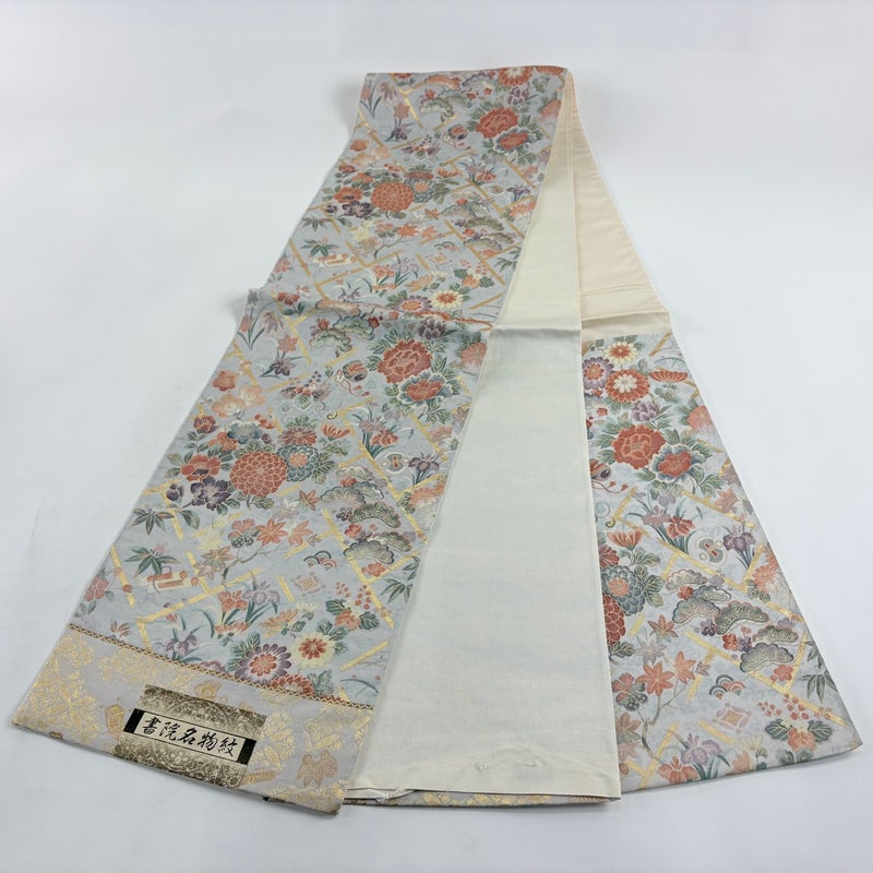 【袋帯】 灰色系 青灰色 秀品 A 帯丈436cm以上 7990-9980 美品 二万以下